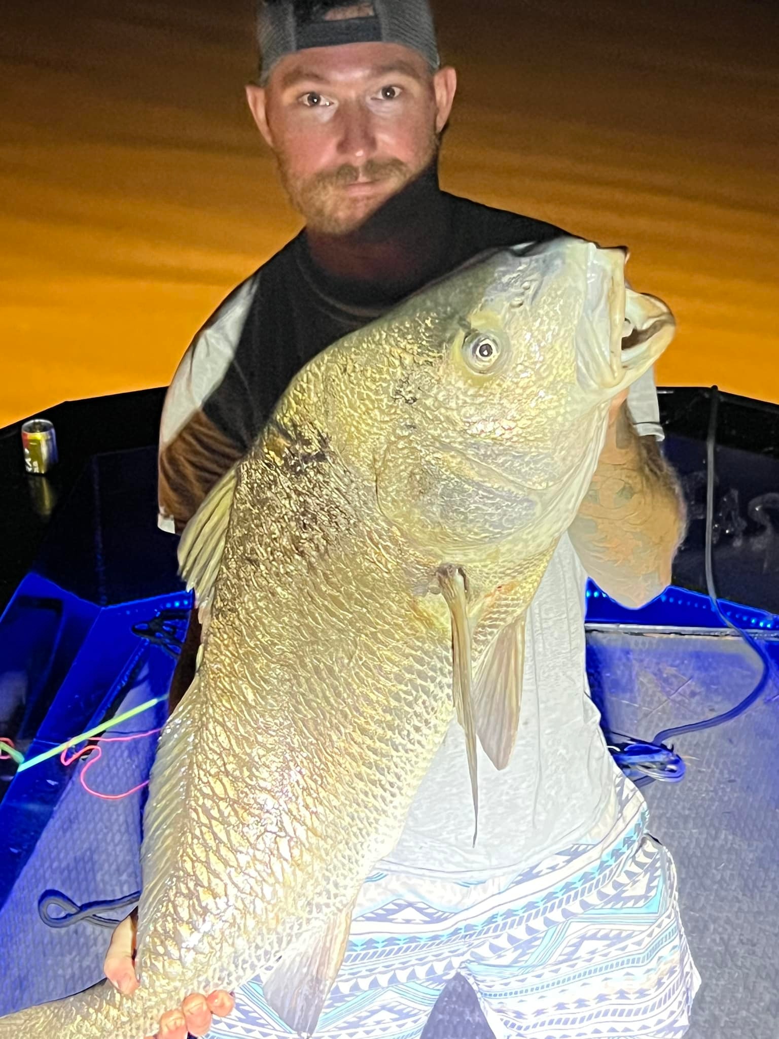 You’ll hear this phrase often during your trip! Because of water refraction, your target isn’t exactly where it appears. To compensate, aim a few inches below the fish. A helpful trick is to visualize a tennis ball beneath the fish’s belly and aim for that spot. The most common frustration in bowfishing is missing a shot—so remember, always aim low!